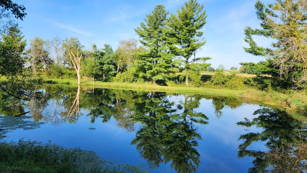 Spring is HERE- get out your poles , plant that garden !! Located approx 10 miles north of Pecatonica IL ( Home of the Winnebago County Fairgrounds ) and approx 18 miles south of the WI stateline . 7.8 total acres with a 2.8 acre constantly running spring fed pond. The pond is stocked with Bluegill, Bass, Channel Cat, Black Crappie and many species of fry. Host to Bullfrog, Crawfish, Wood Ducks, Mallards, Coots, and migratory birds. Including small flocks of Canadian Geese, Woodpeckers, Sand Hill Crane and large numbers of Morning Dove. It's also home to Rabbits, Grey Squirrel, and also hosts large Whitetail Bucks and Does with many hoof prints found on the sandy beach. The Pink creek, a small stream runs alongside of the pond that the pond overflow dumps into and then ends up in the Pecatonica River. The deepest part of the pond is 18 feet deep with shoreline depth of 4 feet and 14 feet...