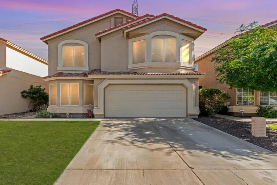 Step into this beautifully updated home with soaring vaulted ceilings on the second floor, and an open, light-filled floor plan. Enjoy recent upgrades including a NEW AC (2022), water heater (2021), and a high-tech automated sprinkler system. Featuring 4 spacious bedrooms plus a versatile den/office, this home offers stunning new flooring throughout, a gourmet kitchen with stainless steel appliances, ample counter space, and a breakfast bar. The elegant primary suite includes dual vanities and a generous walk-in closet. A tiled patio overlooks the backyard—perfect for outdoor living. This home has such a great layout and perfect if you need space! Come see it today!!