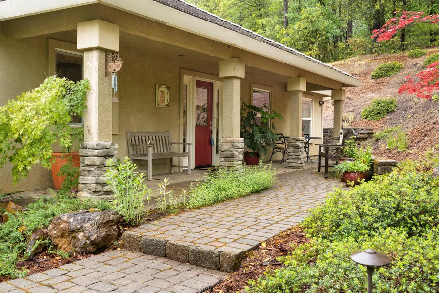 Stop your looking, and call this home. You're sure to be impressed by this stunning, custom single story home. Located privately on a cul-de-sac, among oaks and pines. Gorgeous hardwood floors and slate tile entry greet you upon entering. Soaring ceiling, large picture windows, granite counter tops throughout, custom paint, tile baths are just a few attributes that make this a fantastic home. The grand stone hearth invites you to sit and enjoy the warmth of the fire. Looking for kitchen counter space? This is the one! Ample counter and cabinet space, double ovens, large pantry closet, and views of the soaring pines from one of the two sinks. Opposite the other bedrooms is a lovely master suite. it boasts a glamorous en-suite bath with two walk-in closets, soaking tub and vanity. Enjoy summer days on the covered patio, just steps from your fenced garden with raised beds. room for potential RV storage space. I invite you to come and view this home, you won't be disappointed.