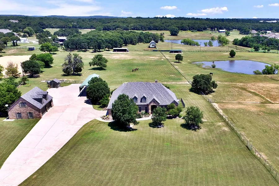 Located in an exquisite area of upper-end properties less than a mile of Lake Ray Roberts and the Isle de Bois State Park, this stunning acreage estate features a fabulous custom home, a matching shop with apartment, pool, covered RV/Boat parking, a pond, 3 fenced pastures with loafing sheds, sandy loam soil and a private water well.