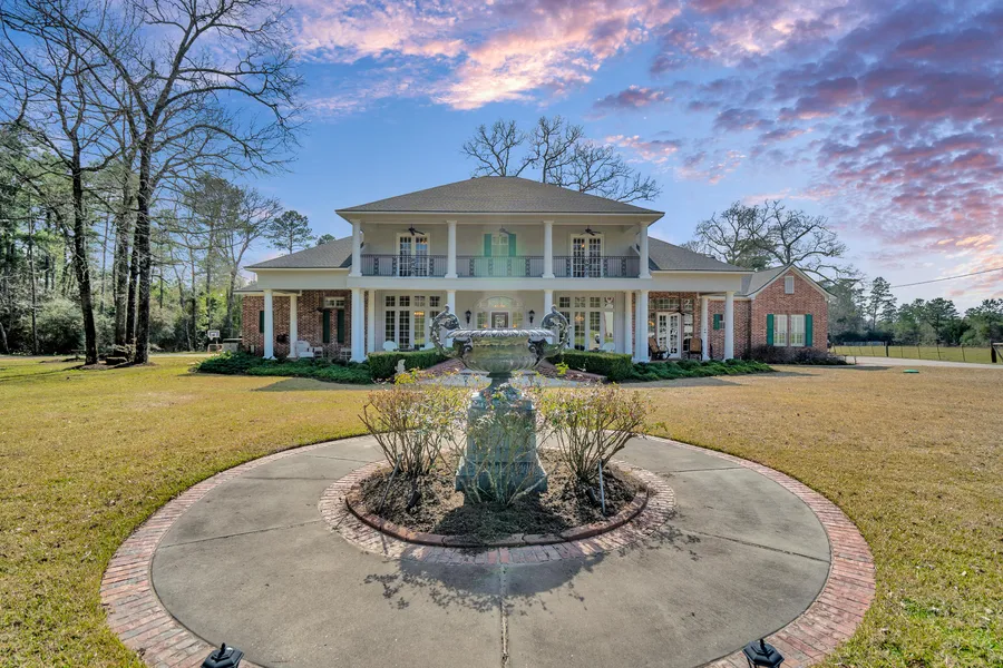 This stunning two-home estate in Conroe, TX sits on 10.37 acres with a gated entrance ensuring maximum privacy. The main residence, custom built as a classic antebellum home, encompasses 4,203 sq. ft. It features 4 beds, 4 baths, an office, and a flex room. The property also includes a 1,292 sq. ft. guest home, large in-ground pool, and a 4,000+ sq. ft. shop. Inside the main home, you'll be greeted by soaring ceilings, abundant natural light, custom cabinetry, wood flooring, and an oversized L-shaped kitchen with granite countertops. The primary bedroom features high tray ceilings, crown molding, a gaslog fireplace, and an en-suite bath with double vanities, separate walk-in shower, soaking tub, and his and hers closets. Concrete driveways, a 28-zone sprinkler system, full bar/saloon in the shop, chicken coop, and fenced and cross-fenced grounds add to the appeal. This pristine property ...