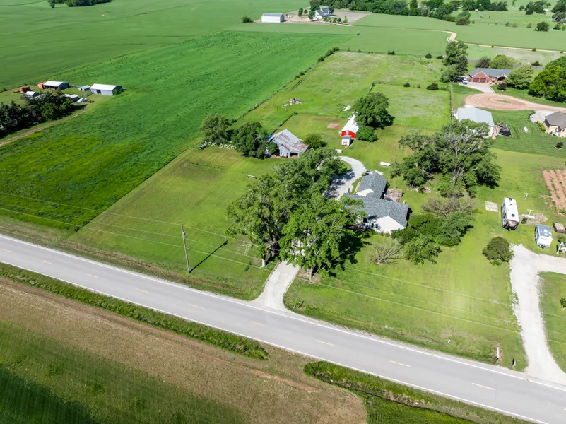 When you arrive at the property, you will notice its convenient access right off 311th with multiple options to highway 54 or a quick run into town. Pulling up to the house, you will see the stunning trees, the constant shade, and the beauty they provide this property. The shrubs and flowers all blooming provide you with a colorful and bright landscape. The trees wrap around this attractive 1,804 square foot home. Originally constructed in 1949, the ranch-style house is a 3 bedroom, 2 bath floor plan which has been updated over the years and kept its small, warm, family feel. From the cozy kitchen area to a wood-filled fireplace in the winter or a mud room lined with school bags and chore boots, this farmhouse will quickly turn from a house into a home! Just off the mud room is a wonderful outdoor patio to take in a sunset or a fantastic area to grill out with the family!