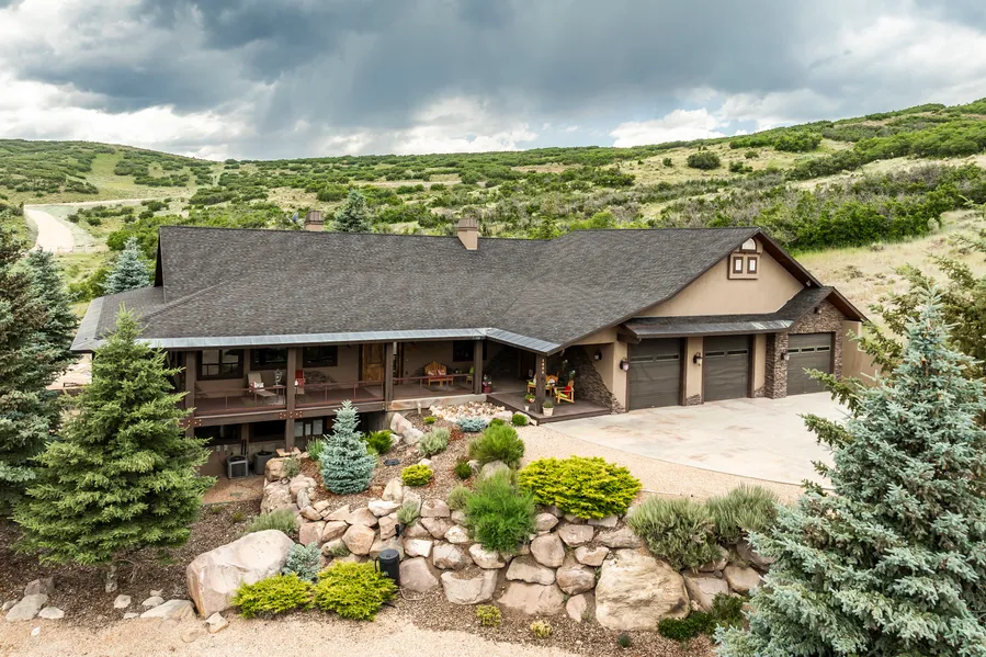 Located in the heart of Wanship, Utah, this private mountain escape is nestled in the prestigious, gated community of Bridge Hollow. Offering breathtaking panoramic views, unmatched privacy, and the perfect balance of mountain living and modern comfort, this exceptional custom-built home is situated on a generous 21-acre lot, featuring 7050 square feet of beautifully designed interior spaces with the luxury of main-level living. There are 4 bedrooms, 3 baths, 2 half baths, dedicated office, vaulted ceilings, expansive windows, 3 fireplaces and a covered wraparound deck on 3 sides of the home. The open-concept floor plan creates a warm and inviting atmosphere filled with natural light and seamless indoor-outdoor living. The gourmet kitchen boasts high-end appliances, custom cabinetry, and a spacious island—perfect for entertaining. The luxurious primary suite includes a spa-inspired bathroom, gas fireplace, walk-in closet, and direct access to the deck for serene morning views, sitting area and hot tub. The grounds and landscaping have been meticulously maintained, and the outdoor gas firepit is a perfect gathering spot for the cool, Utah evenings with plenty of space for a fun game of cornhole. The oversized, 5-car garage will accommodate all your toys, including an RV, and the home theater is a perfect spot for movie watching or cheering your favorite sports team. Just 15 minutes from Park City's Kimball Junction and 45 minutes from Salt Lake City International Airport, this home is ideal as a full-time residence, mountain getaway, or investment property. Whether you seek peace, adventure, or both, this stunning property delivers the ultimate Utah lifestyle.