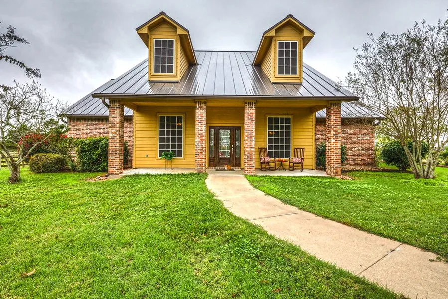 Lovely, updated home on 10+ acres in Hockley with pool & waterfall, 2 barns, fenced & cross fenced. Auto driveway gate leads down circle drive to brick home with deep covered front porch.