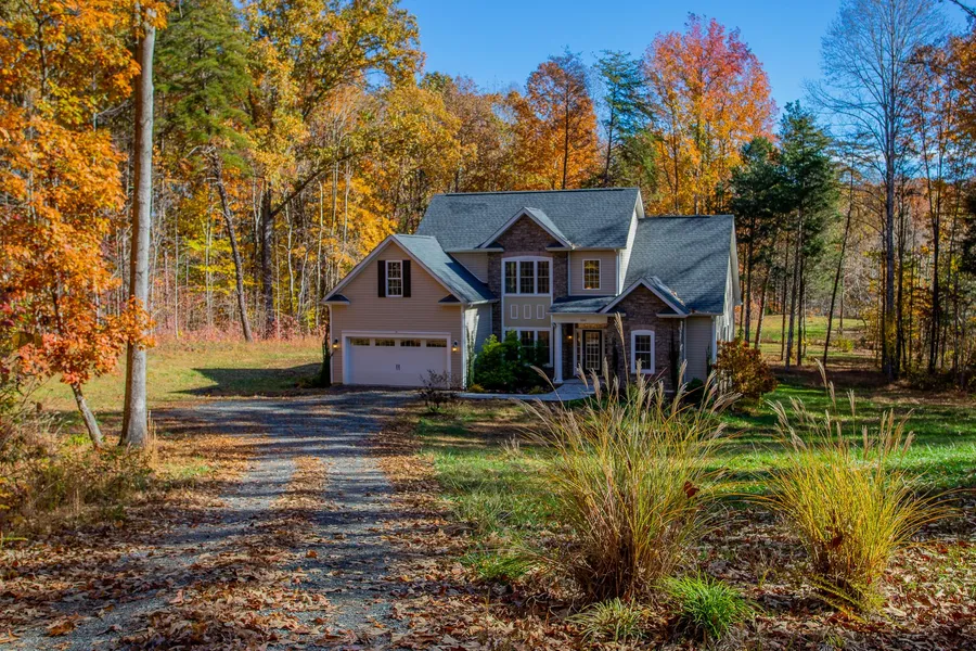 This home is truly a showstopper! From its gorgeous architecture to its perfectly wooded lakefront lot, you will not want to leave! Its nestled in the woods on a quiet road in a private community, this is just a short commute to Lynchburg. The property has trees all around, providing privacy and shade, but theres plenty of open space as you meander down to the lake, ideal for a garden. Inside the home, youll find a grand entrance with tall ceilings, an open staircase, a dining room to your left, a fireplace in the great room, and plenty of windows to take in the surrounding views. The kitchen features beautiful wood cabinets with granite counter tops and plenty of storage space. Theres a raised bar for quick meals and an eat-in area overlooking the backyard. Theres also a half bath for convenience. The main bedroom is on the first level, featuring tall tray ceilings and more of those bea...
