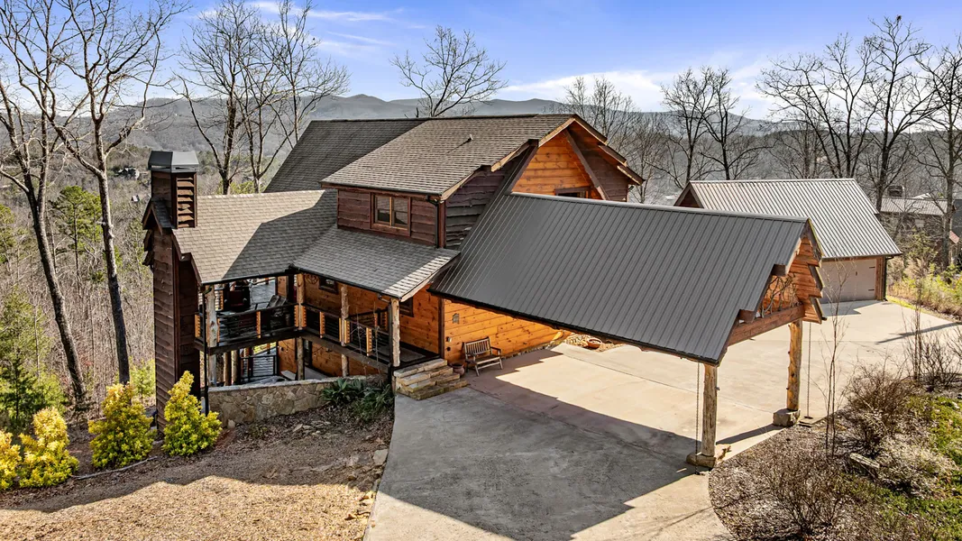 Experience mountain living at its finest with this stunning luxury cabin nestled just over three miles from downtown Blue Ridge. This beautifully crafted home offers a perfect blend of modern amenities and rustic charm. Large windows and expansive porches provide uninterrupted, panoramic views with plenty of outdoor living. It features four bedrooms, three bathrooms (two master suites) plus an extra bunk area. The oversized living area is open to the well appointed kitchen and has soaring cathedral ceilings creating an open and inviting atmosphere. Every detail has been meticulously crafted, combining high-end finishes with rustic charm. Hardwood floors, natural materials, and stylish design elements create a warm and sophisticated ambiance throughout the home. Enjoy cozy evenings by the outdoor fireplace, gather around the fire-pit or relax on the large porches adorned with beautiful mountain laurel railings. The three car garage is more than just a place for vehicles, it's a recreational haven equipped with TVs, arcade consoles and gaming tables, perfect for entertaining guests or enjoying family fun. An additional carport provides extra parking and storage space. No detail has been overlooked in this meticulously designed cabin. From the thoughtful layout to the quality craftsmanship, every aspect of this home exudes excellence and care.