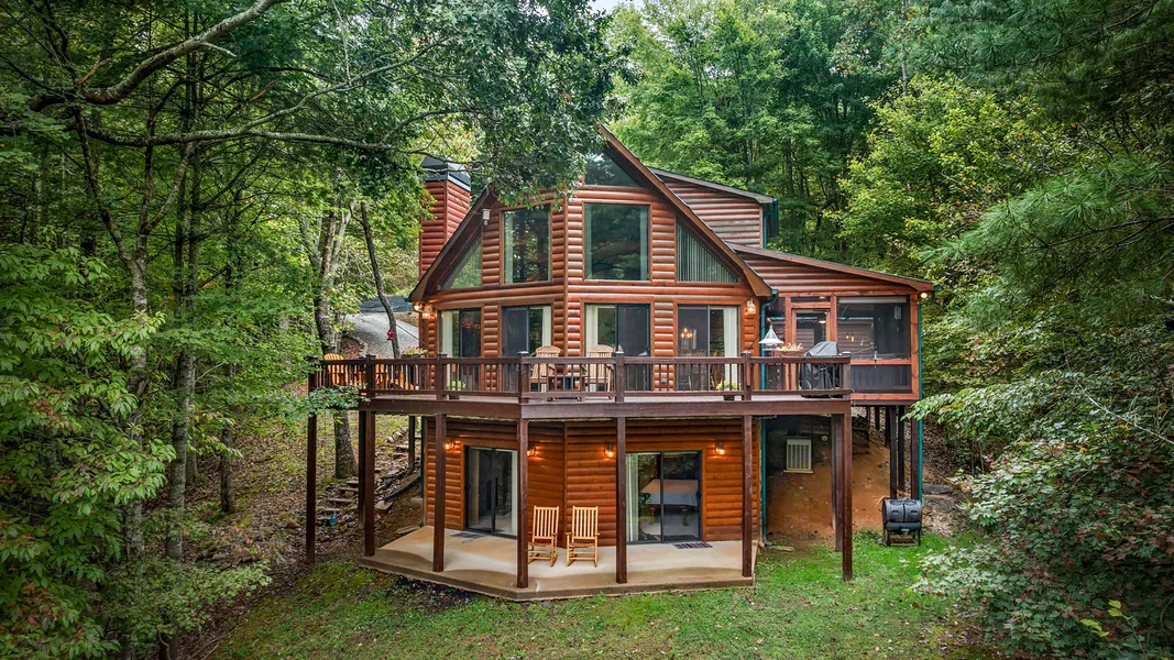 Discover mountain living at its finest in this stunning three bedroom, three bath home located in the sought-after Aska Adventure Area. Perfectly positioned near the Toccoa River and Lake Blue Ridge, this property offers endless outdoor adventures right at your doorstep with hiking and biking trails all around. Step inside to a wall of windows framing year-round, mountain views, filling the open living spaces with natural light. Cathedral ceilings, two stone fireplaces, and warm wood accents create a true mountain lodge feel. The spacious kitchen and open floor plan make entertaining effortless. Retreat to a private primary suite with soaring ceilings and serene views, or relax on the expansive decks where the mountains are your backdrop. With three full baths and plenty of gathering space, this home is ideal for full-time living, a weekend retreat, or make it a successful rental. Additional acreage available.