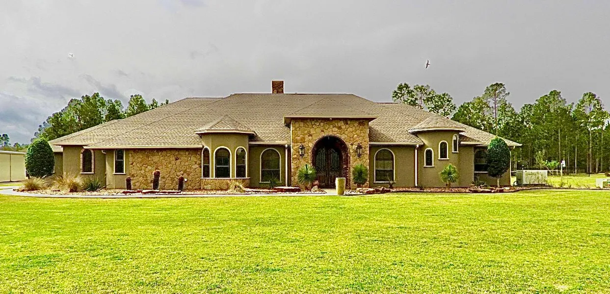 This amazing home is built on 167 manicured acres and contains over 5300 square feet under roof. There are 4 gorgeous bedrooms, 2 full baths, 2 half baths, a large formal dining room, office, two car garage and a trophy room in over 3500 square feet of fantastic living space with 10- and 12-feet ceilings and granite counter tops throughout. A stunning pool, hot tub, and outdoor kitchen and shower, along with 1074 square feet of covered patio are just a few of the special amenities on the property with a beautiful view. This property also contains a 4500 square foot metal building which has 640 square feet of guest quarters with 1 bedroom and 1 bath, workshop, skinning shed with walk in cooler, a 600 square foot gun room and more. A new roof, paint and gutters were done in 2024. There is a 1000-gallon propane tank, 500-gallon gasoline tank, 1000-gallon diesel tank, 36KW Generator that runs entire property, along with a house water well with 365-foot depth and a lawn and pasture water well with 125-foot depth.