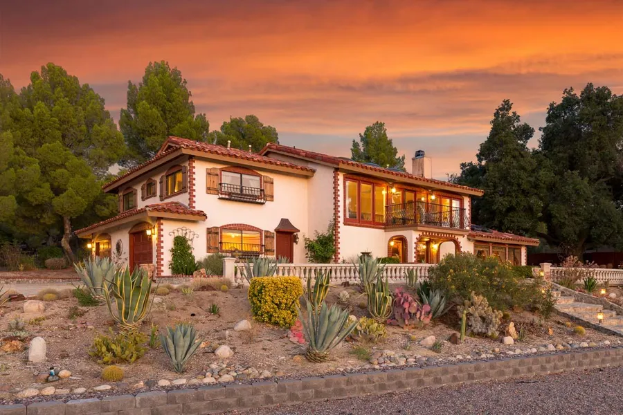 Stunning Spanish villa surrounded by elegant outdoor living area situated on a spacious parcel. This home is iconic in its own right for lighting up at night, hosting unforgettable festivities, memorable golf get togethers, and Warner Springs Ranch Resort after parties. Multi-level floor plan with intimate rooms are tied together by a mezzanine, arch ways, hand- stained Saltillo tile flooring, beautiful ornamental wrought iron stair rails and hand painted tile stair risers. Details are captured throughout the home with custom cabinetry, solid wood or glass doors, windows, 9 skylights, local artist murals, copper sinks, granite counter tops, Colorado rock detail and local artist woodwork. The exterior living space has been designed with a brick overlay driveway, brick capped rock walls, pavers, intimate pergola sitting areas, paver and stone stages, paver stairways, an open courtyard with...