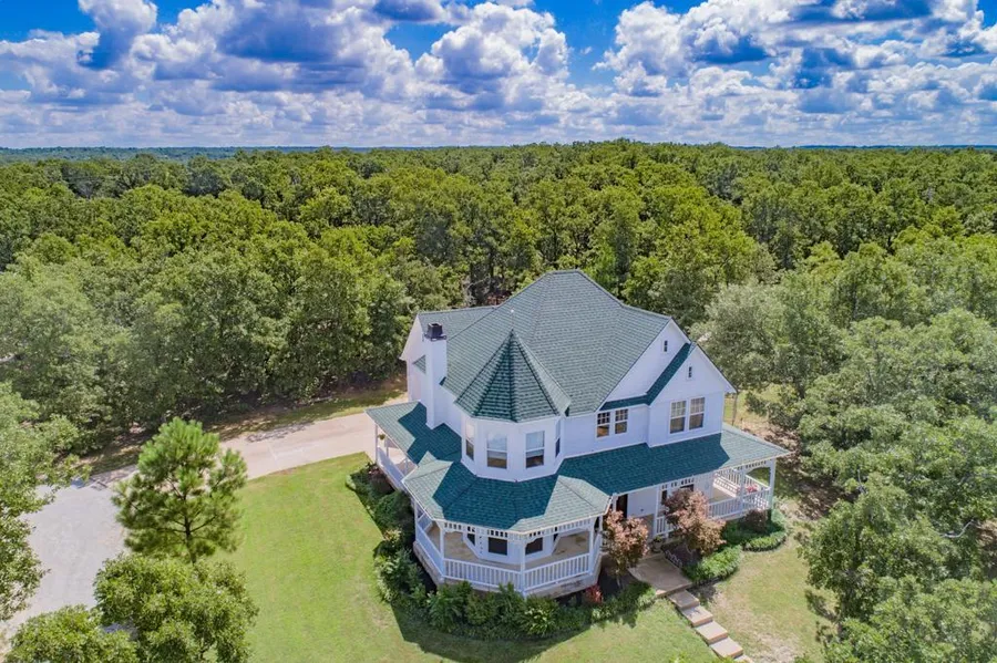 Situated on 15 acres this stunning Victorian Farmhouse is tucked away for privacy, yet conveniently located to Mannford, Sand Springs, and Keystone Lake. As you enter the property through the gated entrance and travel past the pond you are taken back in time. This well-maintained home boasts craftsmanship, quality, and one-of-a-kind finishes. Built in 2003, the 2,362 square foot home offers 3 bedrooms, 2.5 baths, and 3 living areas. The front entryway is stunning with views of the grand staircase, parlor, and formal living. Beautiful walnut floors set the warm and inviting tone in the home. The main level features an open floor plan with 3 potential living areas. Enjoy gatherings in the generously sized formal living room graced by an exquisite fireplace or spend your time in the family room where French doors and oversized windows create an open and airy feel. The unique parlor is adorned with beautiful fret work and has endless possibilities. Entertaining guests is a breeze in the beautiful kitchen that features a large island with built-in cooktop, custom cabinetry, and large pantry. The divine master suite presents tray ceilings, massive windows, and an opulent ensuite bath with a soaking jetted tub, separate glass shower, double vanities, and walk-in closet. The charming guest bedrooms have an abundance of natural light and ample storage with large closets. Outside you will find yourself spending hours on the wrap around porch, basking in the peace and serenity of the property. Tucked away in the timber you will find a 12x24 finished cabin. The separate gated entrance creates endless possibilities. The cabin is completely finished with kitchenette, central heat & air and sleeping loft. The 30x40 insulated shop with overhead door creates ample storage for a workshop or to store all of your recreational toys. This property has it all. Contact Summer Witty at (918)-798-1561 for your private showing today!