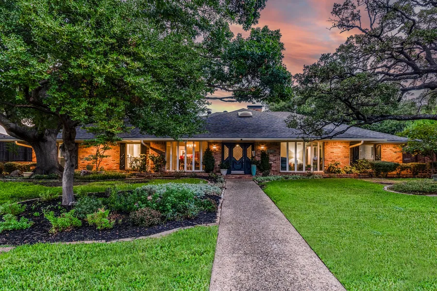 This property features a new roof, recent updates, and is warrantied. Providing privacy from a rear driveway gate and situated on an oversized lot with majestic trees, this light-filled home offers a convenient location within Dallas’s private school corridor. Redesigned with transitional design and updated by seasoned real estate professionals, the home provides every amenity for entertaining and family gatherings. The open floor plan includes a spacious kitchen equipped with Thermador appliances, large islands, a wine cooler, dual sinks, and serving area that opens to a breakfast room and den with skylights, a fireplace, ceiling beams, and a wall of built-ins. Formal living and dining rooms overlook the charming front yard, while bedrooms flank an enclosed sunroom and offer views of the pool and patios in the backyard. Ready for all occasions and ideal for indoor-outdoor living in Texas’s lovely climate, this home awaits weekends of enjoyment and your family’s future memories.