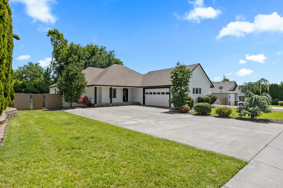 Welcome to this beautifully maintained home offering thoughtfully design and stylish upgrades throughout! From the moment you arrive, you’ll appreciate the side-load garage with new epoxy coated floor, new exterior paint, and inviting curb appeal. Step inside to find wood laminate flooring, crown molding, and abundant natural light flooring through the open great room layout- ideal for entertaining of everyday living. The dining area is impresses with a vaulted ceiling and skylight, adding charm and brightness to every meal. The kitchen is a true highlight, featuring solid surface countertops, rustic cabinetry, built-in smooth top range with oven, microwave,refrigerator, dishwasher, and a pantry- perfect for any home chef. Enjoy a dedicated laundry room complete with tile floors, ample cabinet storage, a countertop workspace, and a sink for added convenience. The primary suite offers a peaceful retreat with a trayed ceiling, ¾ tile bathroom, make-up vanity, laminate countertops, and a spacious walk-in closet. The main bath serves guests or family with a double vanity and tile flooring. Outside, you’ll find an oversized two-car garage with finished overhead storage, plus a stick-built 11x10 shed in the backyard- perfect for tools, hobbies, or extra storage. This home blends comfort and character with practical features and stylish details- ready for you to move in and make it your own!