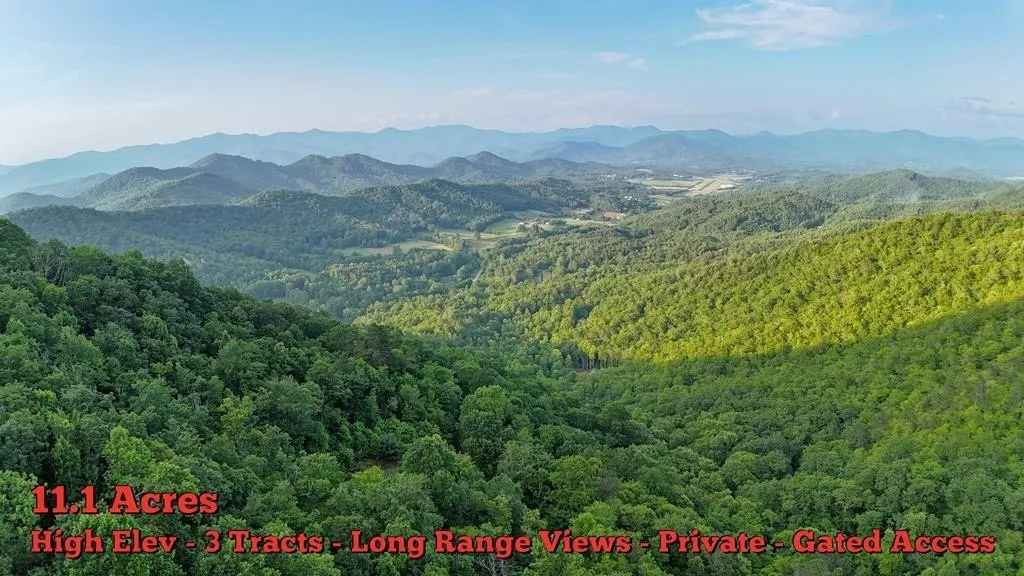 11.1 acre Tract in Burningtown area with A+ Views. This Property is comprised of 3 Tracts located in Greystone Hollow situated around 3,000ft Elevation for cooler temperatures . Greystone Hollow is located at the Top of Wilkes Knob & is famous for its breathtaking views. This private community is very small, quiet, & surrounded by USFS. There are only 6 properties in Greystone Hollow. This Property has alot of neat features: Each tract has its own road & homesite, four nice outbuildings, large entertainment deck with view, small noisy branch cascading down tract, only 0.25mi from Bartram Trl for hiking, & some of the biggest long range views you will find in Franklin! On a clear day you can see the Balsam Mountains 29mi away! This property has underground utilities, maintained roads, & gated access for added security. Greystone Hollow has mild restrictions, & is not restricted against RV's. Property is 2.5mi away from Airport. Additional adjoining acreage available.