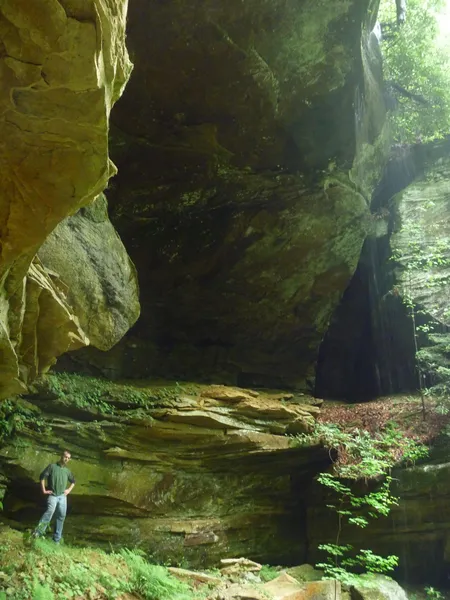 Multiple waterfalls cascade into the gorge and the cliff line includes numerous caverns and rockhouses. Large trees and oversized boulders lie in the gorge which has the effect of making us feel very small. The boulders, cliffs, and caverns create what my kids call rock playgrounds. There is about two miles of cliff line to explore on this property and at least seven waterfall...
