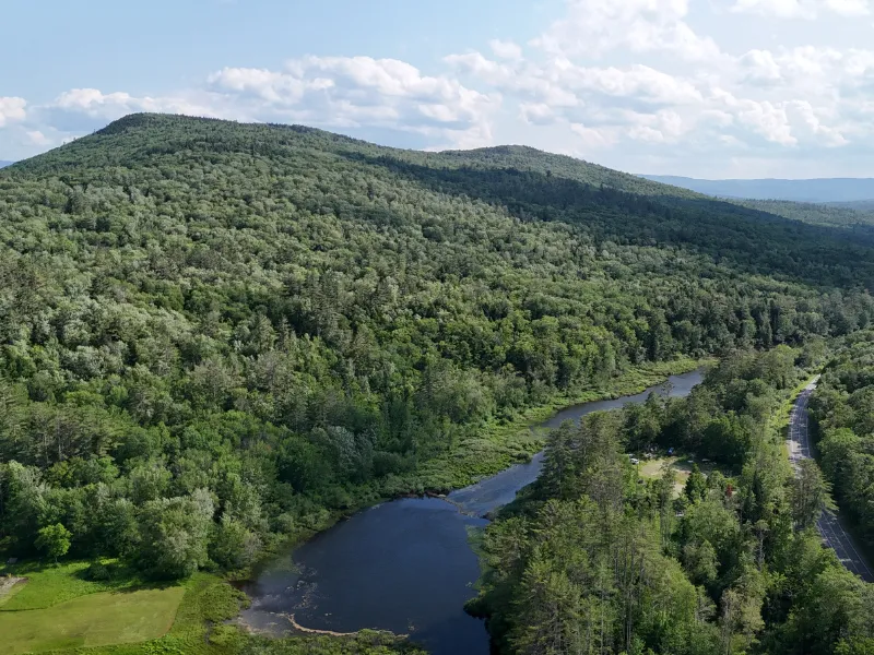 The topography is shaped by the land's southern boundary along Jackman Ridge, which includes Baltimore Hill, a prominent 1,670-Foot local peak, offering an excellent hiking destination with scenic views after tree clearing. Along the way, maturing, dense softwood stands create a scenic hike. From Jackman Ridge, most of the terrain gradually falls (with a historic homestead mid-slope along the way) to the Sugar River, whose elevation is 886feet. The majority of the terrain moderately slopes (with occasional rock outcrops), creating well-drained upland soils and good internal access conditions. The exceptions are some steep slopes south and east of Baltimore Hill, along with an 8-acre wetland at the eastern base of Baltimore Hill.