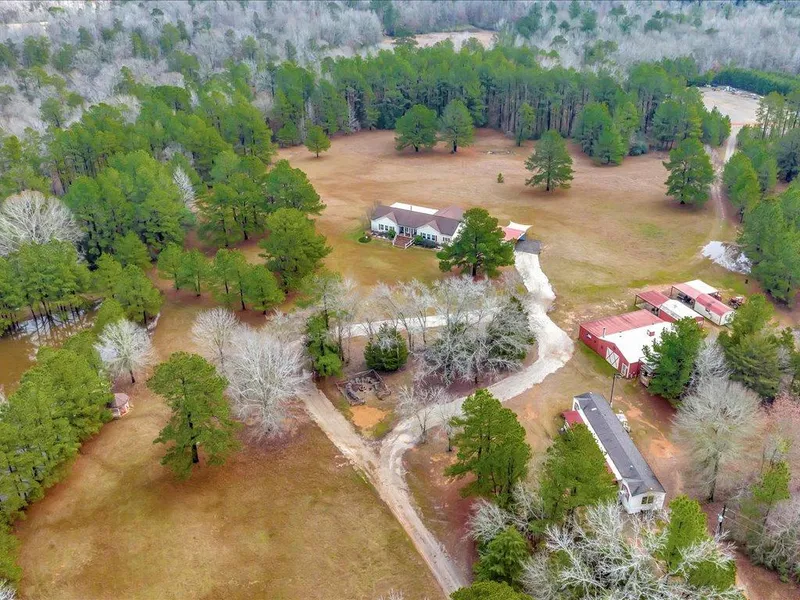 *SPECIAL PRICE IMPROVEMENT* Welcome Texas Style to Sun N Pines Ranch offering 20 acres, Main house Triple wide 2925 sf 4BR 2B, Guest house 3BR 2B 1216 SF furnished. 1541 SF Party Venue Barn w bar, full kitchen, fireplace, bathroom and Karaoke stage all furnished for next party. 6 RV parking posts for extra motorhome guests. 2700 ft road frontage with 3 gated entries on CR 839. Pond, creeks ATV marked trails. Timber approximately 20 years old thinning time schedule 2025. This property offers endless opportunities for business or personal use packages. Homes, additional buildings, pond, 2 tractors, offered with 20 acres Buyer pays for survey. Shown by Serious qualified buyers. Additional acreage available.