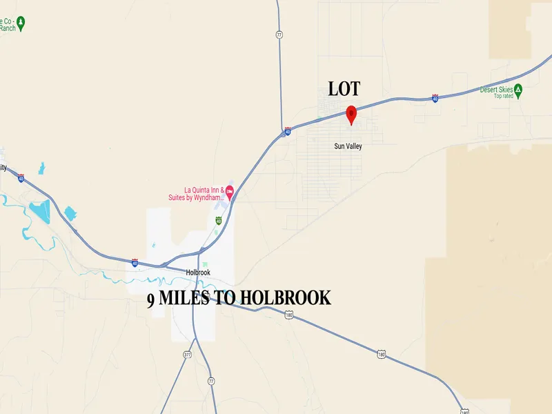 Research Parcel InformationTake I40 East out of Holbrook AZ (7 miles) to exit 294 for Sun Valley Rd. Turn right 0.2 miles to Ramada rd., left 1.6 miles then left on 124th St. 319 feet to raven rd (this road is not yet in) right 80 feet, lot will be on the left.