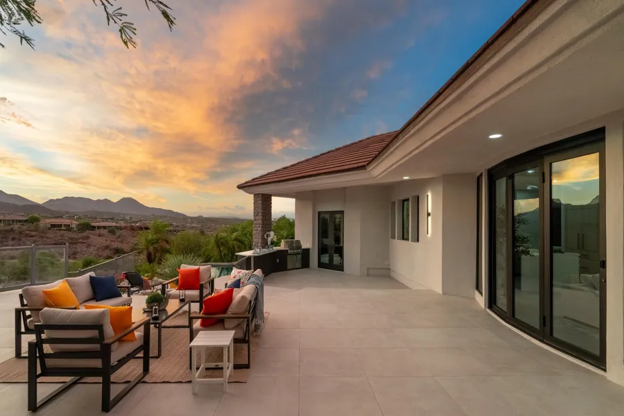 This remarkable steel-framed residence offers the ultimate in high-end living, with every upgrade you could imagine. Situated on one of the premier, highest buildable, custom homesites in the Sunridge Canyon Golf community overlooking views of the 13th, 14th, and 15th holes, the home offers sweeping panoramic views of the McDowell Mountains and the awe-inspiring Four Peaks. Step inside to discover the finest in craftsmanship, where every detail has been thoughtfully designed.