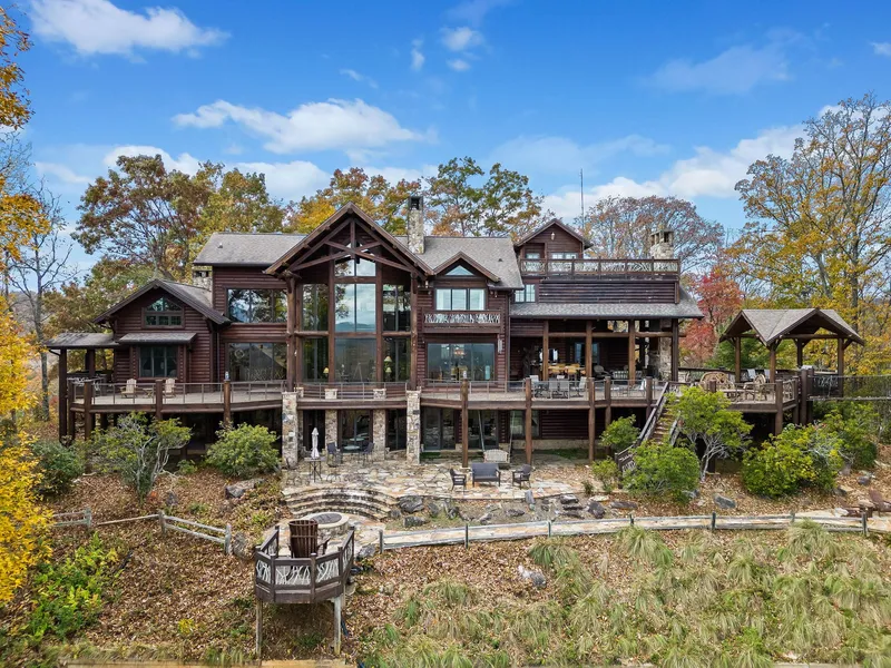 Completed in 2011, this stunning 8,200 square foot log home with stone features was crafted with the utmost attention to detail. Designed by renowned architect Clarence Vinson, one of Atlantas most respected designers, Sunrise Lodge reflects a perfect fusion of rustic elegance and modern comfort. The home is ideal for both family living and entertaining, with 5 bedrooms and 6 bathrooms, including a detached mother-in-law suite with private access.