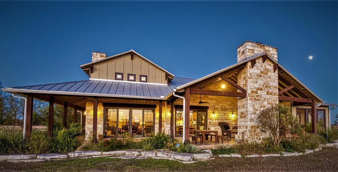 Built to the owners specifications in 2008 and tastefully landscaped, this beautiful home boasts exceptional quality inside and out. The main home is an impressive 3476 sq. ft. (Burnet CAD) stone exterior home, featuring 3 bedrooms, 2 full baths, and 1 half bath. No expense was spared in constructing this home of the very finest materials. Entering the home thru the double wood/glass doors, you immediately are taken in by the soaring ceilings in the living area complete with huge cedar beams, floor to ceiling stone wood-burning fireplace and tile flooring throughout the living area. The open concept kitchen/living/dining area has large windows to bring in plenty of light. The kitchen features a large island, ceiling height custom cabinets, sile stone counter tops, farm style sink, walk-in pantry, gas cook top and single oven. The study features solid mesquite flooring and built-in bookshelves and sliding doors to access the covered patio. The owners suite has beautiful antique long leaf pine flooring, tray ceiling and a screened in porch. The on-suite bath has his/her counters, jetted soaking tub, and a walk-in shower. Extra - large utility room and separate mud room complete the functionality of this one-of-a kind home.