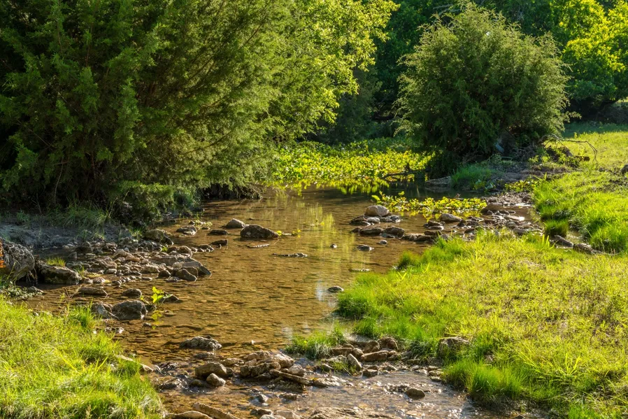WATER: The fabled Old Ranch Spring, well known in the area as one of the most reliable permanent water sources, issues forth on this site into Grays Branch of the Little Devils River, flowing through the ranch for about 1/3 mile. This delightful brook rolls over small falls into lily-lined pools full of minnows in a spectacular riparian area of grassy meadows and overhanging pecan & walnut trees. Steady flow appears to be in the range of 50 gpm, and a site for a small but swimmable lake is evident.