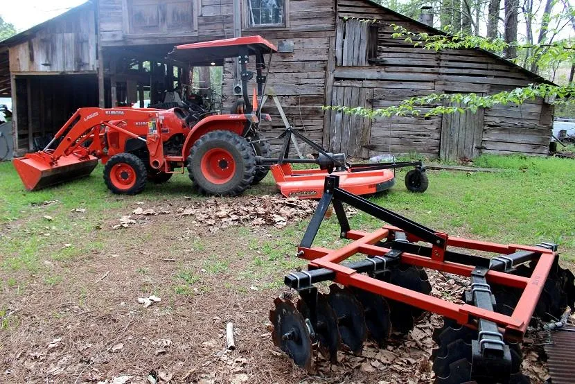Tractor / Implements : Almost new with low hours 40 horsepower Kabota tractor with front-end loader, trailer for pulling the tractor, large disk (apx. 6 ft), 2 drag harrows for leveling and feeding, 3 point hitch lift and plow, bushhog, landscaping box blade, seeder/fertilizer for a tractor, and seeder/fertilizer for a 4-wheeler.