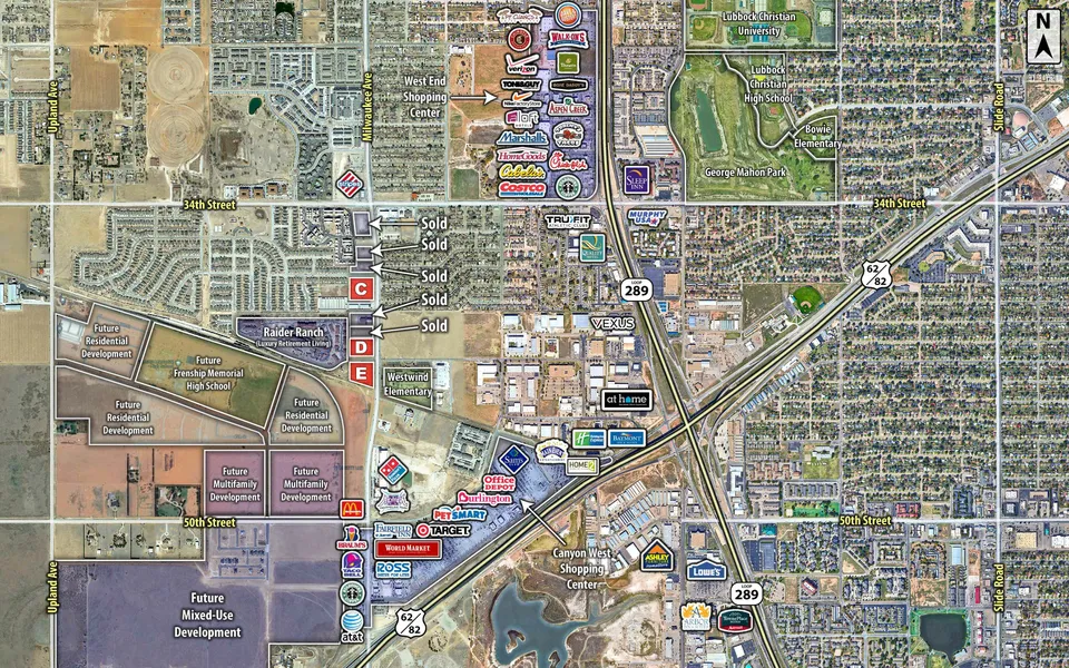 Large Land tracts available with frontage along Milwaukee Avenue and 34th Street. This property is located at the northern end of the developing Milwaukee Corridor in west Lubbock. Thanks to major developments in the area, including West End and Canyon West Shopping Centers. The Milwaukee Corridor has quickly become one of the most trafficked roadways in all of Lubbock. This tract is conveniently located close to Loop 289 and the Marsha Sharp Freeway.