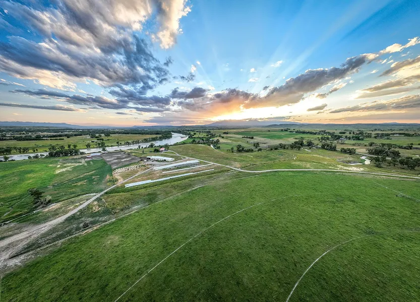 Located off Howie Road, the Sweet Grass Farm on the Yellowstone is just three miles northeast of the small town of Big Timber, Montana, and approximately 45 minutes from Livingston and just over an hour from Bozeman. The Yellowstone River forms the southern boundary for approximately one mile. Otter Creek enters the property from the north and meanders along the western boundary before joining the Yellowstone. The 493+/- deeded acres offer crop production or grazing, including 367+/- irrigated acres, with approximately 307 of those acres being irrigated under four pivots. Water rights are primarily conveyed by two irrigation ditches that traverse the property. Structural improvements include an 8,200+/- square foot shop/storage/cattle handling facility with well and septic. Undeveloped building sites offer sweeping views of the Yellowstone River and the Beartooth, Absaroka, and Crazy Mou...