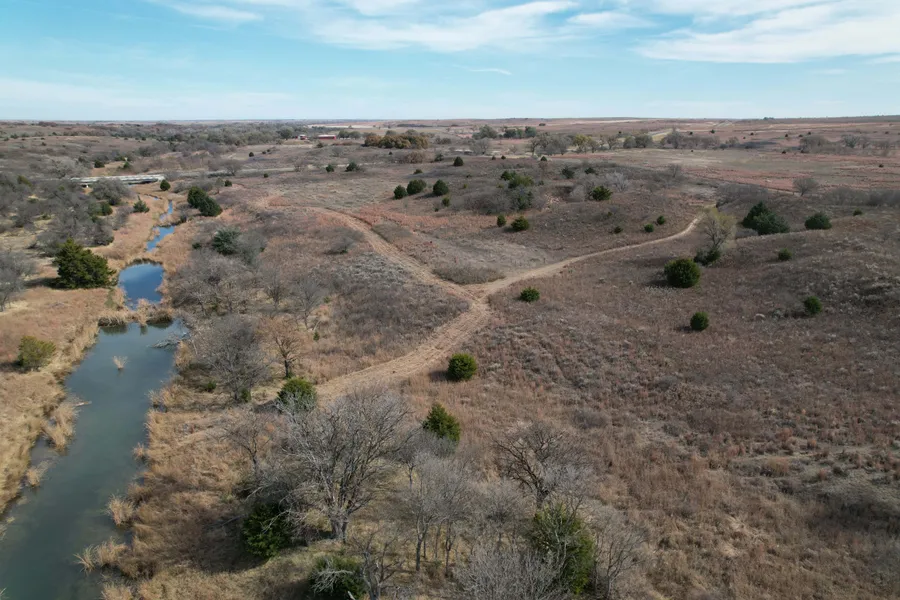 The property boasts approximately three-quarters of a mile of Sweetwater Creek flowing through it, featuring a strong water presence and three to four sizable water holes—ideal for wildlife, recreation, or future enhancements.