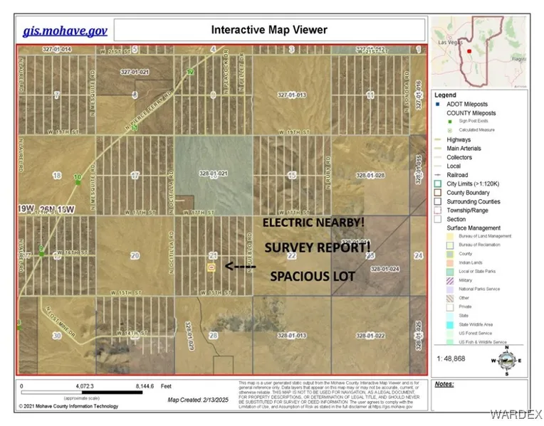 1.06 ACRES IN DOLAN SPRINGS! Welcome to the Lake Mohave Ranchos subdivision where seclusion meets tranquility. Beautiful desert surroundings, this can be your camping grounds getaway! SURVEY ON RECORD, perfect for those looking to know the properties boundary lines. This might be the property you've been waiting for to come up for sale. Very low yearly taxes to maintain, won't break the bank to hold onto it for your summer escapes! Horses, livestock, off road vehicles welcomed! No HOA's or covenants/restrictions here, zoned agricultural residential and not in flood zone!!Drive by and see if this is property is for you, many possibilities. Dolan Springs offers a tranquil retreat for nature enthusiasts. Despite its peaceful seclusion, this community is just approx. 40 minutes from the city of Kingman and 1 hr. 20min from the vibrant city of Las Vegas, providing the perfect balance between ...