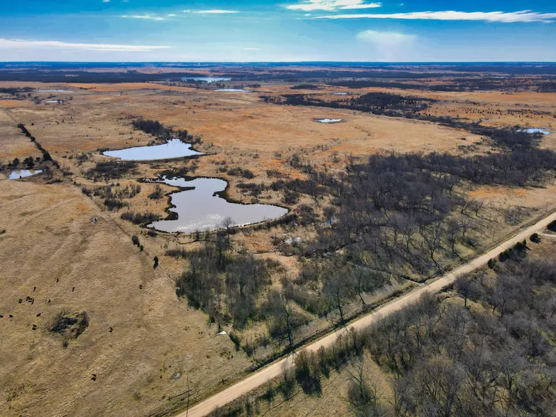 The 640 Acres lies on the North side of highway nine and offers 13 ponds with the 2 larger ponds measuring 3 and 2.5 acres. The land is estimated to be 85% timber with a nice blend of Bermuda and Native grasses. There are 5 pastures and 3 new large traps located east of the brand new working pens and hay pen. The new cattle pens are approximately 2 years old and are built to suit accommodating semis and large gooseneck trailer...
