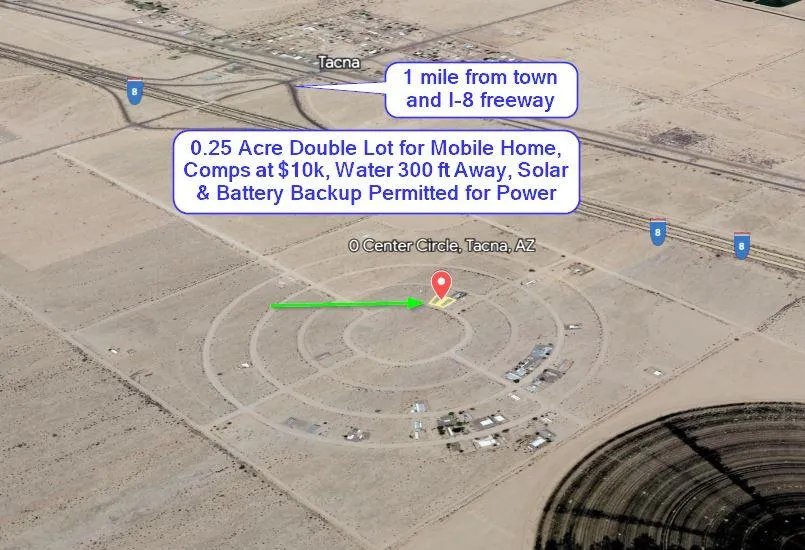 Tacna, AZ - 2 Lots = 0.26 Acre, Yuma County, Water 300ft & Power 1,000ft Away, Solar & Battery Backup Permitted, 40 mi. Yuma, Est. Value $9,000!