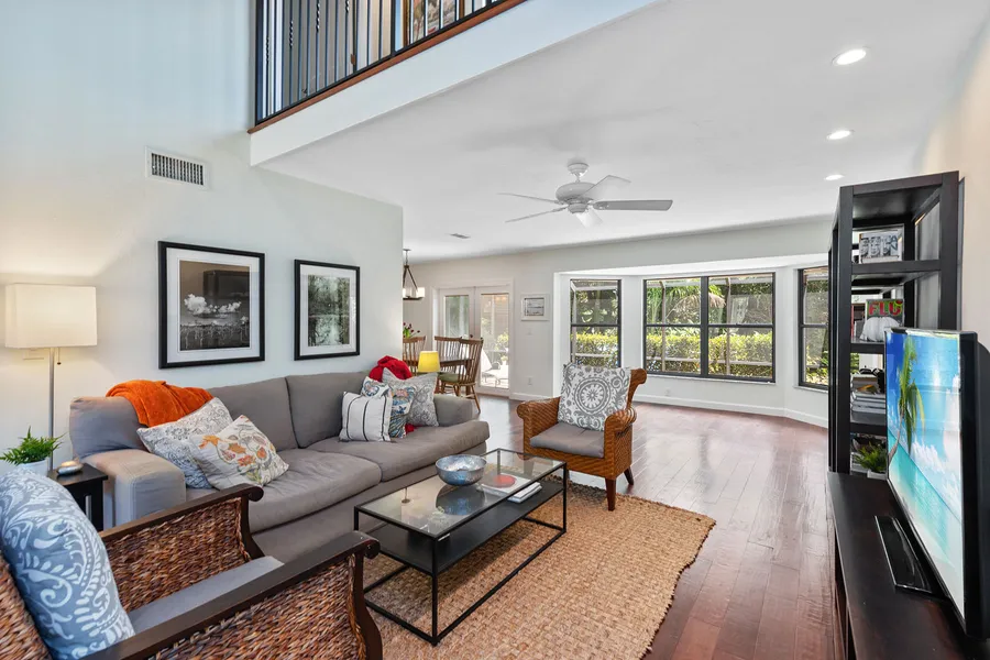 Centrally located to all that Naples has to offer! This well-maintained two-story gem in the desirable Tall Pines neighborhood is perfect for raising a family, entertaining guests and living in paradise. Step in through the decorative glass entry, featuring high-planked wood ceilings open to the upstairs hallways. The layout seamlessly flows from the large living room with bay windows and French doors leading out to the expansive screened lanai. The bright, well-equipped kitchen features granite countertops, a pantry, recessed lighting, breakfast bar and plenty of storage. The ground-floor master suite boasts a walk-in closet with built-in drawers and shelving, dual sinks and oversized shower. There's a functional utility room and 2nd en-suite bedroom downstairs, and upstairs are 2 more bedrooms, shared bath and screened balcony to enjoy the sunrise. Other notable features include hickor...