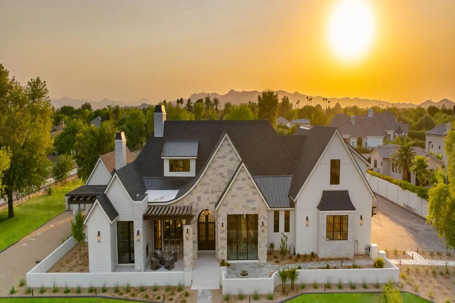 There is luxury, and then there is the Tally Ho Estate. A visionary new build unlike anything else on the market, this architecturally bespoke estate is a masterclass in elevated living. Set on 1.65 acres with horse privileges and unobstructed mountain views, the property captures the soul of Arizona's natural beauty while offering unmatched proximity to dining, shopping, and Sky Harbor Airport. Designed for those who demand the exceptional, the estate blends modern elegance with intentional functionality. Soaring vaulted ceilings with exposed beams welcome you into a sun-drenched great room, where a dramatic fireplace wall and 12-foot pocket doors erase the line between indoors and out. The backyard, framed by Arizona's legendary sunsets, evokes a resort experience all your own. At the heart of the home lies a chef-caliber kitchen curated to perfectionquartz counters, a custom wood-topp...