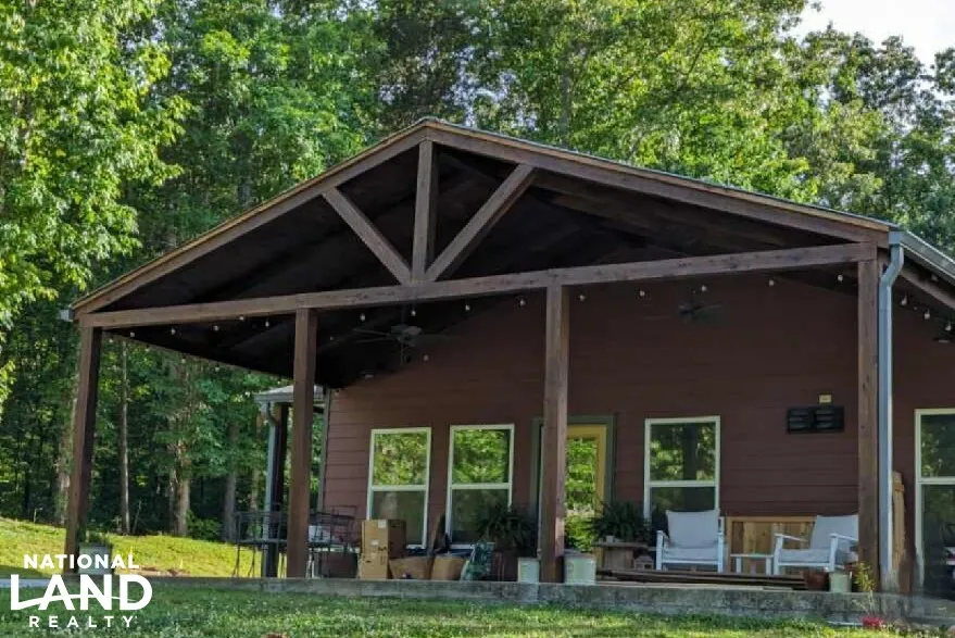 Nestled amidst the serene wilderness of Hickman County, Tennessee, this exceptional 2284 sq ft cabin offers a unique blend of luxury living and outdoor adventure. Boasting a Hardie Board exterior, this cabin stands as a testament to quality craftsmanship and enduring beauty. Set against the backdrop of 57 acres of pristine land, this property is a paradise for outdoor enthusiasts, particularly those drawn to the thrill of deer hunting. With ample deer habitat and abundant wildlife, including whitetail deer, this property offers unparalleled opportunities for hunting enthusiasts to indulge in their passion while surrounded by the breathtaking beauty of nature. Step inside, and you'll discover a spacious interior designed for comfort and relaxation. The cabin features two bedrooms and two bathrooms, providing ample space for both residents and guests. The open-concept living, dining, and kitchen areas create a welcoming atmosphere for gatherings and entertaining. The gourmet kitchen is a chef's dream, featuring an 8 ft island, a 48" gas range with a double oven and custom vent hood, and a walk-in pantry for storing supplies and provisions. Additional highlights include a sunroom with a mini-split system for personalized climate control, perfect for unwinding after a day of outdoor adventures. On the opposite end of the cabin, an extra living room or man cave awaits, complete with the potential for a wet bar and refrigerator hookup, ideal for hosting gatherings or simply relaxing in comfort. Outdoor living is equally enticing, with a 20x16 covered deck off the back of the cabin providing a peaceful retreat to enjoy the sights and sounds of nature. A 30x16 covered patio on the East end overlooks a tranquil pond, offering a picturesque setting for outdoor dining or simply soaking in the serene ambiance. A small covered front porch and a portico over the West end door add to the charm and appeal of the outdoor spaces. For those with hobbies or storage needs, a 40x50 shop with three 12 ft lean-to's provides ample space and versatility. With concrete floors in two of the lean-to's and convenient access via walk-in and garage doors, the shop is well-equipped to accommodate a variety of needs and activities. And let's not forget the natural beauty that surrounds the property, including 600 ft of creek frontage along Tatum Creek on the North West side. Whether you're fishing, hiking, or simply enjoying the peaceful sounds of the water, this creek frontage adds an extra layer of tranquility to the property's already serene setting. Seller will consider splitting the property into two tracts.