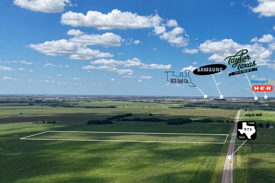 Located just minutes outside of the city limits of Taylor, Texas the 22.29 acre Taylor Farms, sits approximately 2.8 miles South of the Samsung Semiconductor Plant. In an area experiencing tremendous growth, this property is a prime candidate for single family residential, commercial or mixed- use development. The 22.29 acre tract offers approximately 541+/- ft of paved frontage on FM 973.Located just outside the Taylor City Limits and within the ETJ, the properties are situated in an Opportunity Zone and entirely outside of FEMA Floodplain areas further enhancing development potential. There is an additional 158.14 acres available directly across FM 973 which offers dual frontage on FM 973 and FM 1660, for a total of 180.43 acres. The surrounding area is experiencing rapid growth, making this a strategic opportunity for an investor or developer to purchase and plan for future development. All due diligence and development plans to be verified by the buyer.