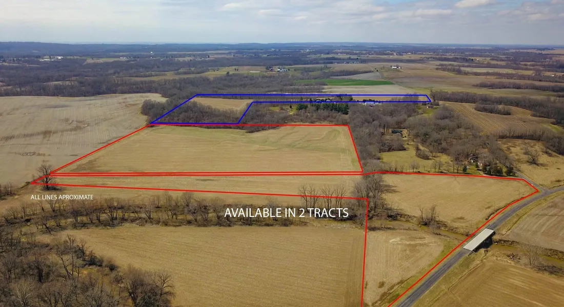This is a great piece of income producing farm land that also offers a great building site(s) near the Jones Road entrance. 30 acres of this farm were tiled in 2012 and there are numerous mature walnut trees in the wooded areas. 2 tracts available for $442,260. Tenants rights exist for the 2018 farming season.