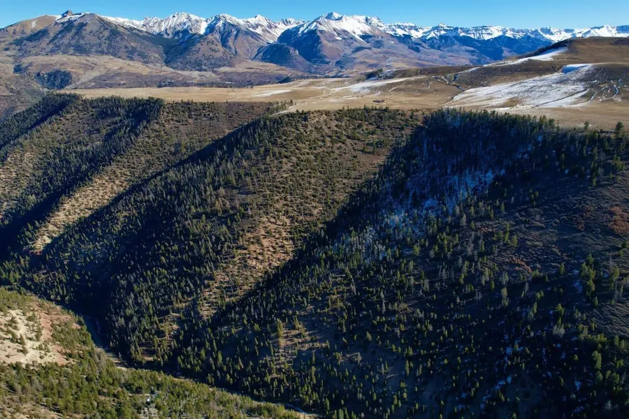 Situated just 2 miles up Silver Pick road and along Big Bear Creek is this 78 acre parcel of vacant mountain land. The land features 1200 ft of river frontage, plenty of mature trees, and a natural seasonal waterfall running through the property. This is a great opportunity to build your dream home or cabin, with the option to subdivide the land into two 35-acre parcels. There is no current domestic water or well. As required by the county, an engineered bridge will need to be built for any home building project that takes place. Currently, there is a cleared flat spot just above the road, a small shed, and a solar power setup. The property boundary starts across the road at 8,300 feet in elevation and stretches to the top of the eastern hillside and Wilson Mesa too about 9,360 feet. As you climb in elevation, gorgeous views of Mount Wilson and surrounding peaks appear.