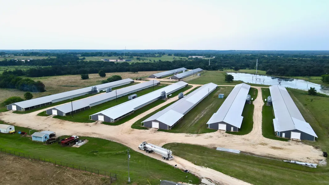 You don't want to miss out on this one. It is located in beautiful Burleson County in central Texas and close to Houston and nearby Bryan/College Station. It is an eight house broiler farm contracted with Wayne-Sanderson Farms at the top pay level. This farm has been well cared for and all houses have been upgraded to current Wayne-Sanderson specifications. These poultry houses have solid wall construction, drop ceilings, Chore-Time equipment, LED lights, and Rotem controllers.