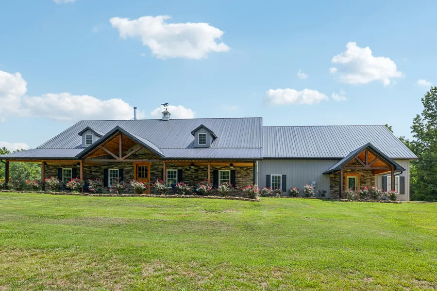 Custom-built 3bd/2bath Barndominium with approx 2,800 sq ft with open floor plan and 12-foot ceilings. The kitchen has granite countertops, a farm sink, custom cabinets, double built-in ovens, and a large granite island. The dining area features a stone fireplace. The master suite is spacious and includes a luxurious bath with a jacuzzi tub, elegant double sinks, and a walk-in tiled shower. Notable amenities include high-speed internet, on-demand hot water, LVP flooring, a large DBL garage, and an in-ground pool. Outside has rock landscaping with rose bushes, vibrant stone and woodwork underneath the covered porches, and a fenced-in backyard. Approx 40 acres is fenced and cross-fenced for livestock. Natural water features include a year-round stream and 2,773 feet of frontage on Hardin Creek. Abundant wildlife, including whitetail deer and turkey. Located just 6 miles from a marina on th...