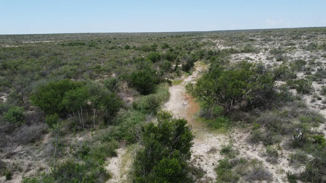 The rolling terrain is intersected by two draws with wet weather creek bottoms the flow into Cedar Creek. Heavy brush cover is present in the low lying areas for wildlife. Stunning views of the mountains in Mexico to the south from all areas of the ranch.