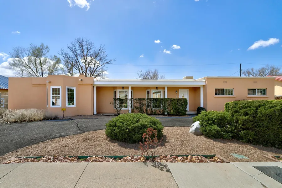 This special North Valley Nature Center neighborhood is calling you home to this beautifully remodeled, spacious Territorial residence w/ 4 bedrooms, 3 baths & an additional bedroom & bath in the charming casita. The gourmet kitchen w/ quartz countertops, new appliances & kitchen island invites entertaining your family & friends. This open, airy, light-filled floorplan flows from the front entry through the main living area into the great room that opens up through the sliding glass doors to the enormous covered patio. Amenities include 2 living areas, 2 primary bedrooms & 2 additional bedrooms/office space. There is an expansive exterior w/ 2 raised beds for your organic gardening & a workshop/storage building. Close to Old Town, downtown, hiking & bike trails & the Rio Grande river.