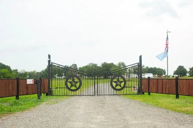 To the west of the main home is a 40 x 60 barn with large, covered porch and two sturdy hitching posts, concrete floors, a tack room and two large bay doors on each end of the barn. Five runs are connected to the barn on both the north and south sides with covered areas and doors leading into the barn. An alley with outdoor lights leads out of the runs to the large pipe and cable arena. South of the barn is a small round pen.