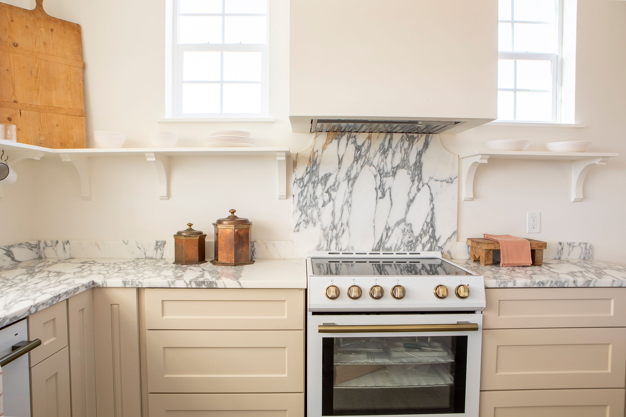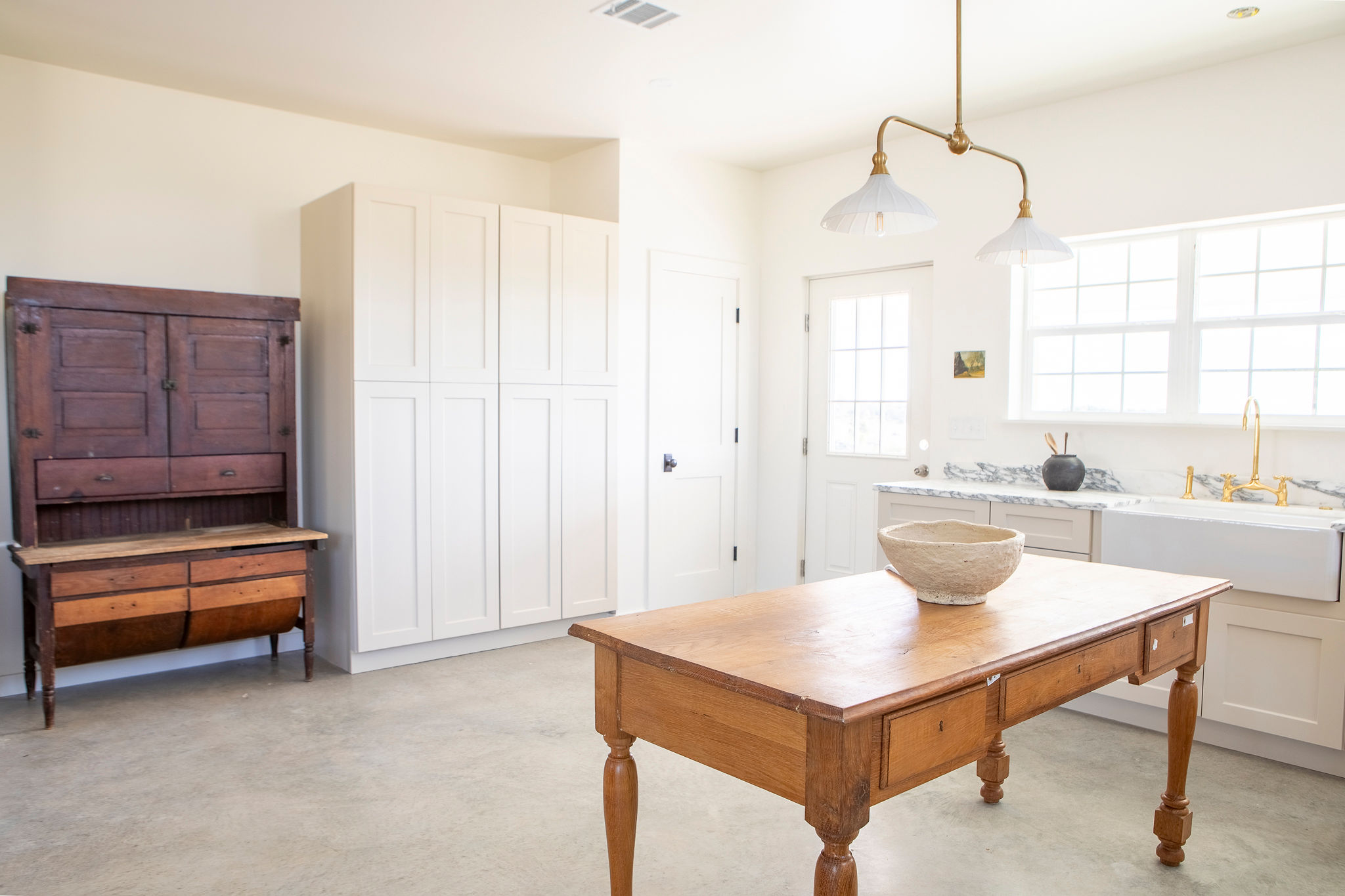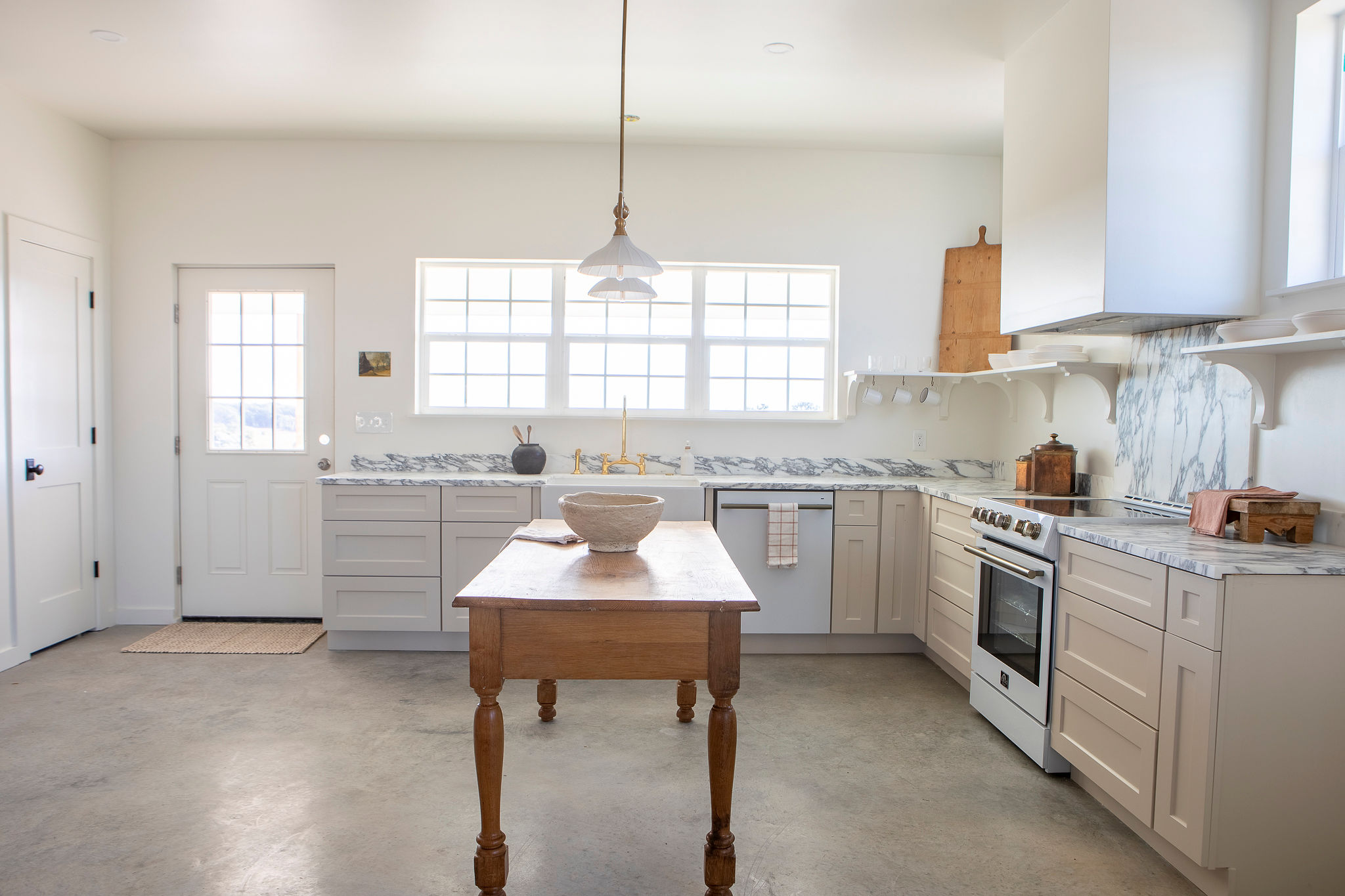 The Kitchen: A true showpiece featuring high-end appliances, classic white cabinetry, marble countertops, a farmhouse sink, and a stunning custom island — perfect for cooking, entertaining, or simply gathering with family and friends.