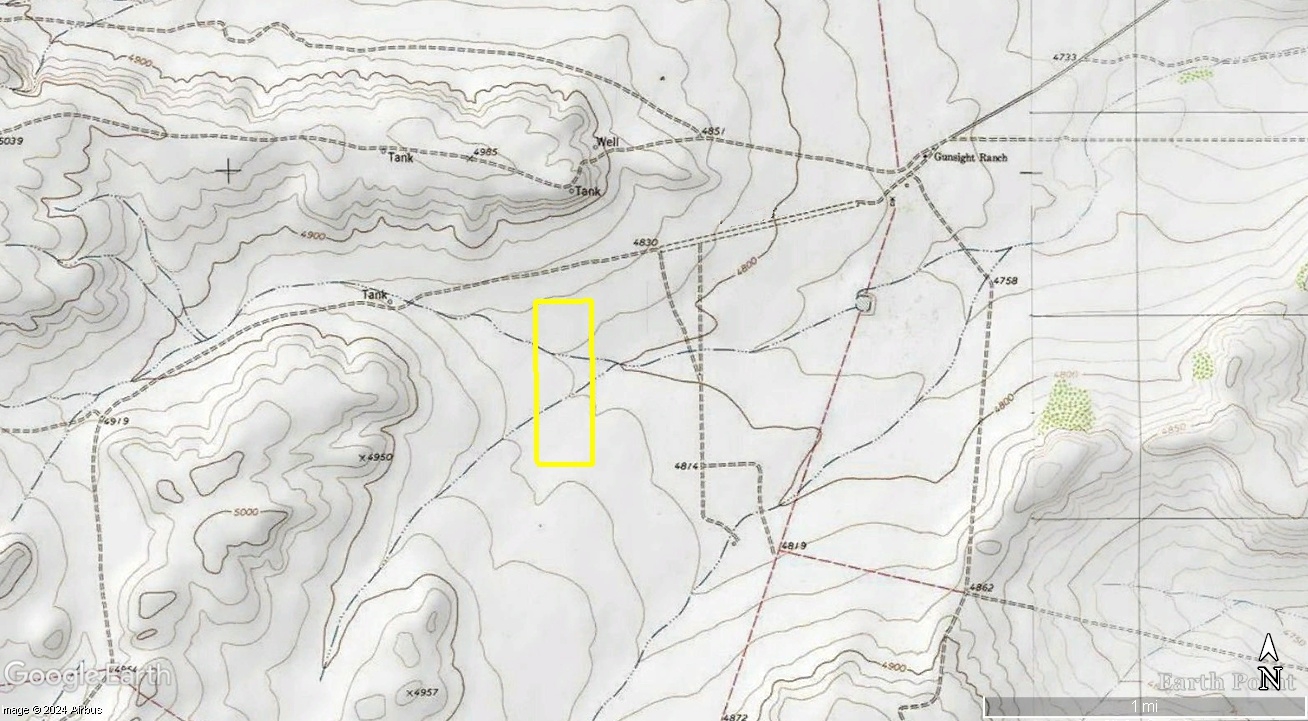 There are trails to the property from the northwest and northeast, it is only about 150 yards from the main trail road through the ranch, and power is about 185 yards away.