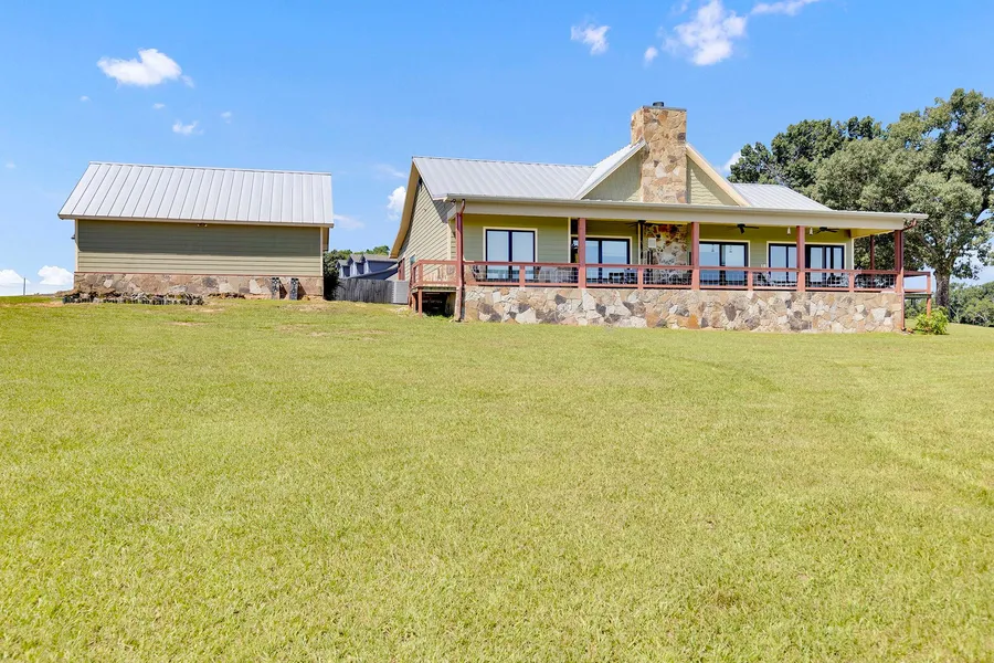 INVEST IN TEXAS - BUY LAND - KOTO RANCH is located in the city of Winona, Texas, near FM Road 16 East and Highway 155 in Smith County. The ranch presents an extraordinary East Texas living experience, seamlessly blending breathtaking panoramic views with modern construction and an array of coveted amenities. From vibrant sunsets to rolling hills, the vistas from KOTO RANCH are outstanding. The ranch residence is a fusion of classic architecture with contemporary design, atop a secure stem wall foundation, creating a harmonious setting. The impressive country home, spanning 3,211 square feet under roof, with 2,169 heated and cooled, boasts Marvin Custom sliding doors and windows, Wolf and subzero appliances, and an Xtrodinair fireplace ensuring warmth during winter. The Galvalume standing seam metal roof and energy-efficient spray foam insulation provide durability and comfort. Offering peace of mind, a Generac generator (24 KW with a 10-year warranty) and a storm shelter enhance safety measures. The ranch, safeguarded by a Stay Tuff hog-proof fence, features a spring-fed pond for fishing and cherished moments. Additional structures include a 31' X 24" metal shop, a 26" X 12" RV garage, and a 36' X 20' horse loafing shed.