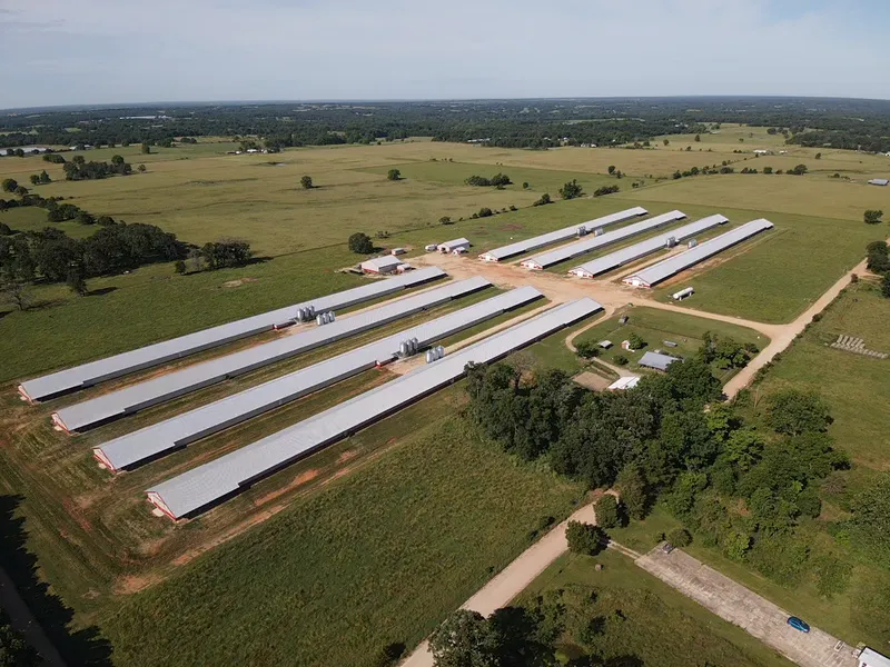 The most advanced poultry farm in the area can now be yours. (8) 46 x 700 poultry houses less than 2 years old loaded with tons of extras. Fully automatic trolly system, Feed pans with flood that eliminates the need for chick trays, LP Train car system. Media filter water system that saves on filters, large well house/shop for ample storage and work area and much more. 1,444 sq foot fully remodeled home with shop/garage. Several additional outbuildings and barns. 2 deep wells with rural water back up. Land is open and perfect for hay and grazing. Land is surrounded with roads on 3 sides. This is a must see farm.