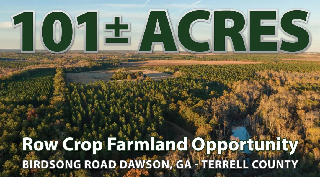 The Weeks Group is pleased to present The Birdsong Farm a beautiful Sportsmans Paradise in Terrell County, GA. This 101+/- Acre property checks all the boxes with 44+/- Acres of row crop farmland, 22+/- acres of upland plantation pines and mixed hardwoods for deer hunting. Enjoy the secluded duck pond tucked away in the hardwood bottom! You simply cannot find a more diverse piece of property in this acreage class! This property is located just 3 miles West of Dawson on Doverel Highway. Register and Bid Today!