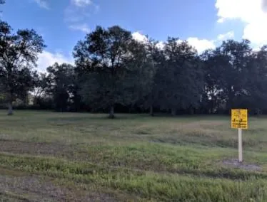 Lot 44 is mostly cleared with a power pole and nice large oak tree.
