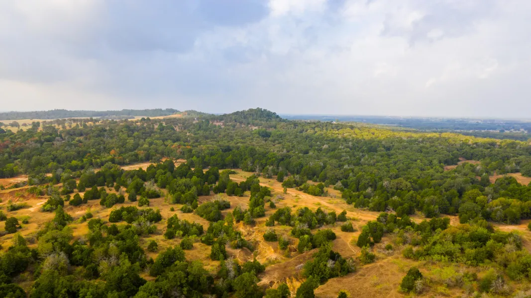 The terrain of the ranch is primarily rolling with heavy wooded forests, open pastures, cleared trails and hunting lanes, deep creeks and drainages, and beautiful hilltops. The property has a healthy mix of cedar, oak, mesquite, as well as a few towering pine trees overlooking the countryside.
